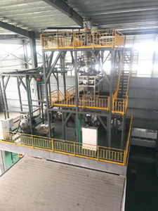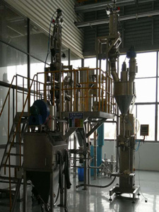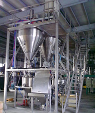 此项目包含小袋和手套箱拆包机,真空输送机,称重配料系统和小袋包装机